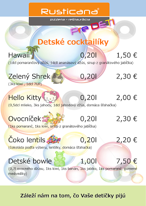 a zabaviť na mini disco, kde na vás čaká super zábava, Vaše deti sa možu skvelo zabaviť, vytancovať so svojimi kamarátmi, popíjať napríklad Zeleného shreka alebo Hello Kitty a veľa iných chutných a hlavne zdravých nápojov.